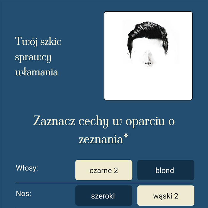Po każdym zdobytym zeznaniu dotyczącym wyglądu możemy zaznaczyć tę informację na portrecie pamięciowym,