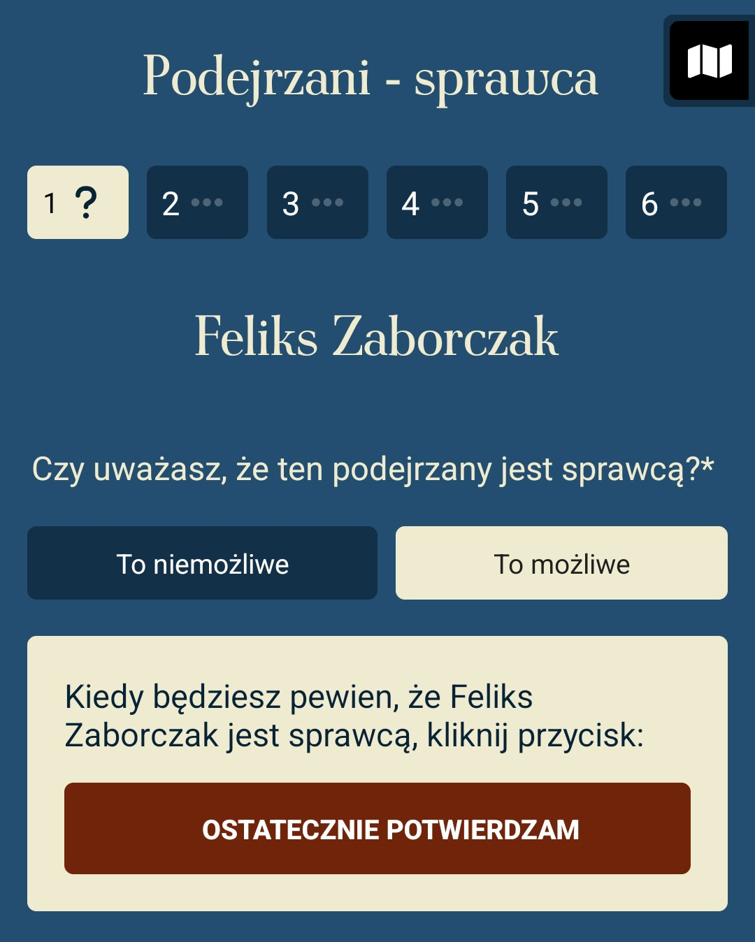 W zakładce "Wskaż sprawcę" kliknięcie klawisza "To możliwe" wywołuje pojawienie się przycisku "Ostatecznie potwierdzam".